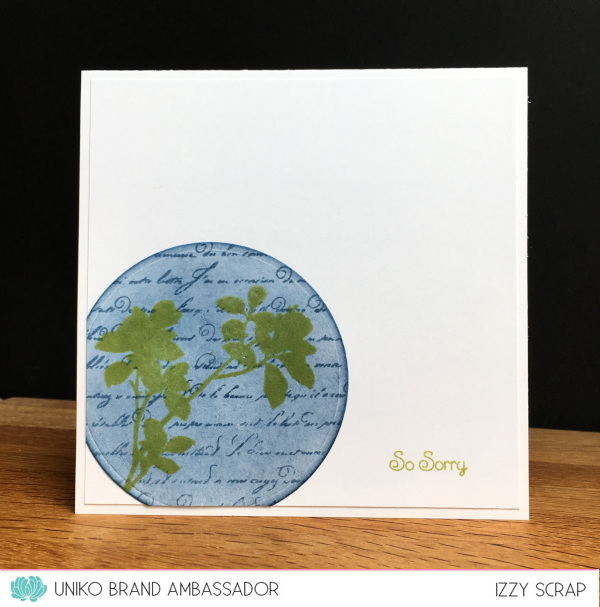Fournitures / Supplies : Stamps : Uniko “Hello Lovely”, Simply Graphic “Planche Condoléances” (sentiments) – Inks : Distress oxide “Spun Sugar, Worn Lipstick, Uncharted Mariner, Chipped Sapphire”.