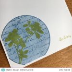 Hello Izzy, Always nice to come by and see what you have been up to. You have a beautiful trio of cards here. Gorgeous floral, and love the stencil surrounding your butterfly too. As for your card for Color Hues…I love the CAS layout and the text circle using our hues. Thanks for playing along.